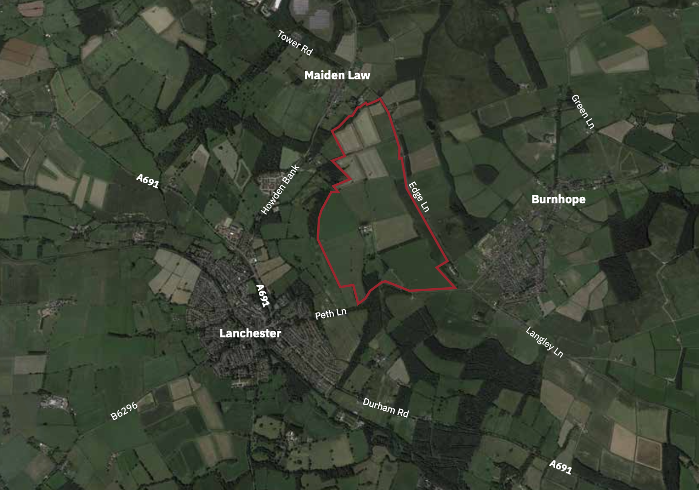 The development site is located between the villages of Lanchester to the west, Burnhope to the east and Maiden Law to the north. The closest town is Stanley 2.9 miles (4.7km) to the north east of Annfield. The site itself it bordered by the roads of Peth Lane